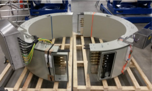 分體式過孔滑環(huán)可以有幾米的直徑。滑環(huán)通常由2-4個部分組成,它們在現(xiàn)場連接在一起??讖捷^大,應用于散裝物料處理設備。